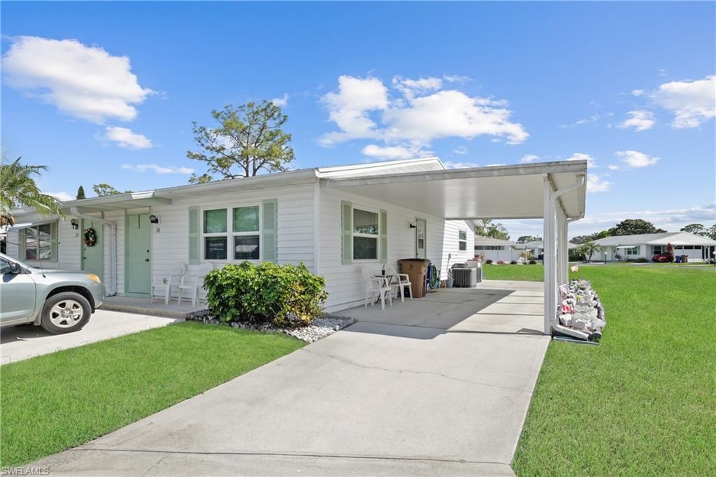 Discover the perfect blend of comfort and convenience in this charming 2-bedroom, 2-bathroom home nestled in the desirable 55+ Pinewood Condominium community of Lehigh Acres. This well-maintained home features brand-new carpet throughout, creating a fresh and inviting atmosphere. Enjoy peace of mind with newly installed impact windows and a recently replaced roof, ensuring durability and energy efficiency. The water heater is approximately two years old, adding to the home's updates. Designed for ease and accessibility, the bathrooms have new handicap toilets for added comfort. The functional layout includes a convenient stackable washer and dryer, maximizing space and efficiency. Outside, a covered carport provides sheltered parking and additional storage options. With low association fees, this community offers an affordable and welcoming environment, perfect for those looking to enjoy a relaxed lifestyle. The friendly neighbors and well-maintained surroundings make it easy to engage with the community. Conveniently located near local shopping, you
